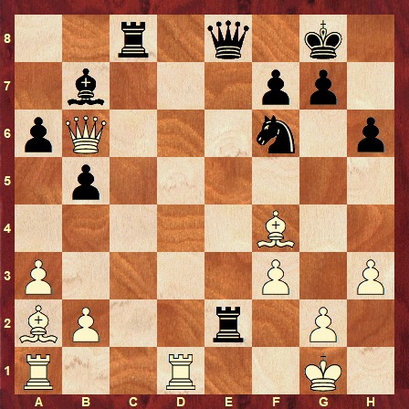 The solution is: 24… Rcc2 25. Rd2 Rcxd2 26. Bxd2 Bxf3 0-1