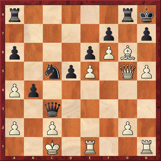 The solution is: 25…Nd3+ 26.Kd1 Rac8 27.Re2 Nb2+ 28.Kc1 Nc4 0-1