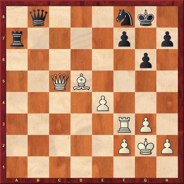 The solution is: 42. Rxf7 Rxf7 43. Qe7 1-0