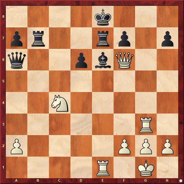 The solution is: 28.Ne5 1-0