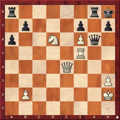 The solution is: 1. Rg5 Qxf6 2. Qd4 Rg6 3. Rxg6 1-0