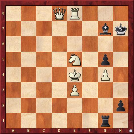 The solution is: 1.Qd3 h1Q 2.Kd4 1-0