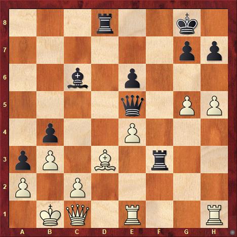 The solution is: 31… Rdxd3 32. cxd3 Rf2 0-1