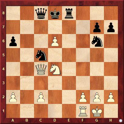 The solution is: 25. d7 Kxd7 26. Qd5+ Ke7 27. Nf5+ Kf8 28. Nd6 Qc7 29. Nxe8 Kxe8 30. Re1+ 1-0