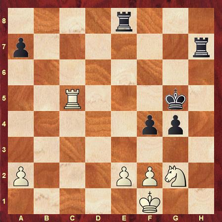 The solution is: 44… Re5 45. Rxe5+ Kf6 46. Rd5 0-1