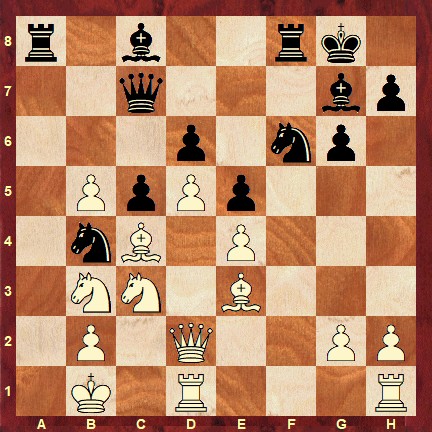 The solution is: 20… Nxe4 21. Nxe4 Bf5 22. Bd3 Qa7 23. Kc1 Qa1+ 24. Nxa1 Rxa1+ 25. Bb1 Rxb1+ 26. Kxb1 Bxe4+ 27. Qc2 Bxc2+ 28. Kc1 Bxd1 0-1