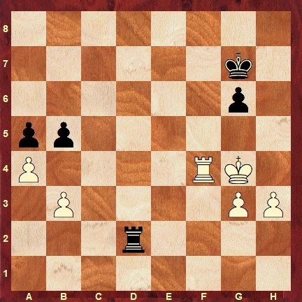 The solution is: 48. b4 g5 49. Re4 axb4 50. axb5 b3 51. Rb4 b2 52. Kf3 Rd3+ 53. Kf2 1-0