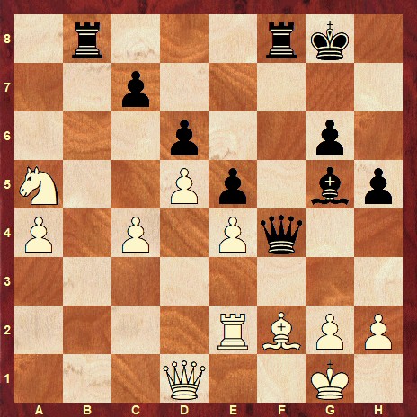 The solution is: 33… Qxf2+ 34. Rxf2 Be3 35. h4 Rxf2 36. Kh1 Rbb2 37. Qe1 Rbe2 38. Qd1 Rc2 39. Kh2 Bf4+ 0-1