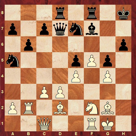 The solution is: 21. Bxg5 hxg5 22. Qxg5 Bg8 23. Qh4+ Bh7 24. g5 Ng8 25. Ng4 Nc6 26. Rf3 Qe7 27. Bf1 Rd7 28. Rh2 b5 29. Rfh3 a5 1-0