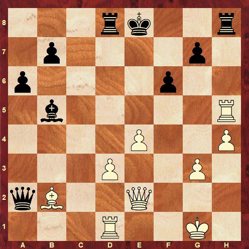 The solution is: 25… O-O 26. Ra1 Qf7 27. Rf5 Rxd3 28. Rxb5 Qc4 0-1