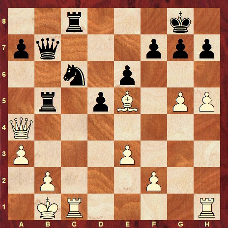 The solution is: 25… d4 26. Bxd4 Rb8 27. Bc3 Rxb2+ 28. Ka1 Rb6 29. g6 Ra6 30. gxf7+ Kxf7 31. Qf4+ Kg8 32. Qd6 Nd4 0-1