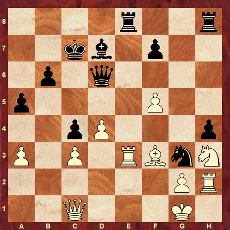 The solution is: 34… Qh6 35. Re1 Rxe1+ 36. Qxe1 Re8 0-1