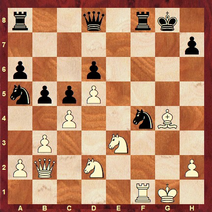 The solution is: 24. Rxf4 Rxf4 25. Be6+ Rf7 26. Ne4 Qh4 27. Nxd6 Qg5+ 28. Kh1 Raa7 29. Bxf7+ Rxf7 30. Qh8+ 1-0