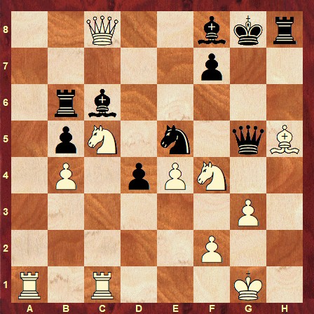 The solution is: 34. Nce6 fxe6 35. Qxe6+ Kh7 36. Ra7+ Bg7 37. Rc5 Be8 38. Rxe5 Qxf4 39. Rxg7+ Kxg7 40. Qe7+ Qf7 41. Rg5+ 1-0