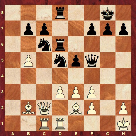 The solution is: 25… Nd4 26. exd4 Rh6 27. Rg1 Nf4 28. Rg4 Qh5 29. h4 Qxh4+ 30. Rxh4 Rxh4+ 31. Kg1 Rd6 0-1