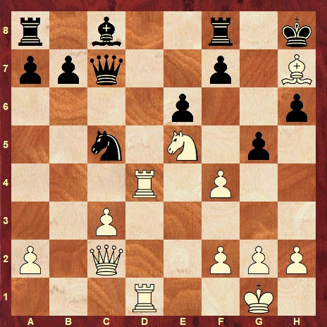 The solution is: 18. Bg6 gxf4 19. Qe2 1-0