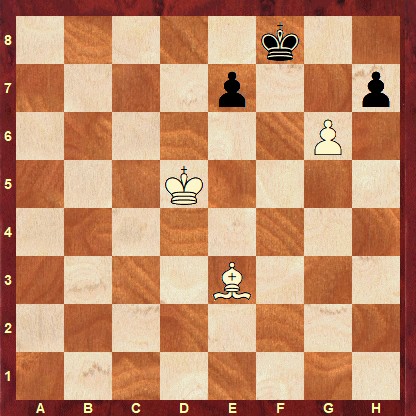 1. Bh6+ Kg8 2. g7 Kf7 3. g8=Q+ Kxg8 4. Ke6 Kh8 5. Kf7 e5 6. Bg7# 1-0