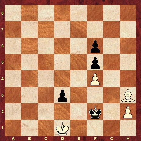 The solution is: 1. Bg2 Ke3 2. h4 Kxf4 3. Bf3 Ke5 4. h5 Ke6 5. Bd5+ Ke7 6. h6 Kf8 7. Kd2 1-0