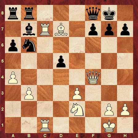 The solution is: 28. Bf5 d4 29. Rxf7 Kxf7 30. Bxh7+ 1-0