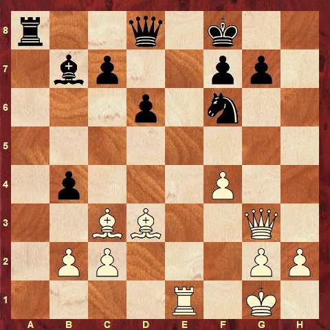 The solution is: 22. Qh3 Ng8 23. Qh8 f6 24. Bc4 d5 25. Bxb4+ Kf7 26. Qh5+ 1-0