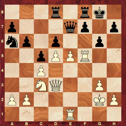 The solution is: 22. Ne4 Nb4 23. Qd2 dxe5 24. Nf6+ Kg7 25. Rh5 Qc7 26. Rf1 1-0