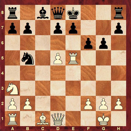 The solution is: 13. Nxb5 fxe5 14. d6 O-O 15. Bg5 Qb6 16. dxe7 Qxb5 17. exf8=Q+ Kxf8 18. Qd6+ Kg8 19. Bh6 1-0