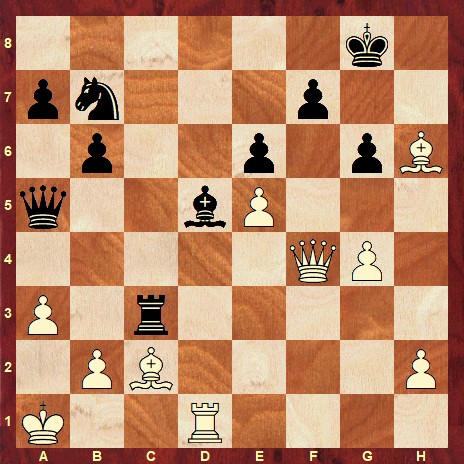 The solution is: 33. Rxd5 exd5 34. Qf6 Rxa3+ 35. bxa3 Qxa3+ 36. Kb1 Qb4+ 37. Kc1 Qe1+ 38. Kb2 1-0