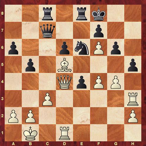 The solution is: 23. e6 fxe6 24. Bxg7 Bf8 25. Rg3 1-0