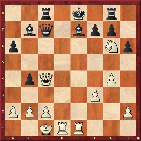 The solution is: 34. d5 cxd5 35. c6+ Kxc6 36. Qb5+ 1-0